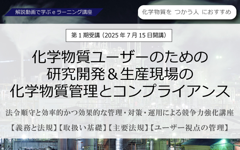 第2期受講(2025年10月16日 開講)≪解説動画で学ぶeラーニング講座≫研究・開発・技術者のための化学物質管理とコンプライアンス